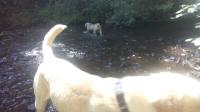 Another day of walking with Tara and Max. Breakfast at Vitality & Kynd, then a lovely wander through the woods around Blackford Hill. Tara, after initial hesitation, discovered a love of fetching the ball from the stream. To the point that if we weren't throwing it for her, she'd drop it off the edge herself then run off to find a way to get it back. She went from barely wanting to dip her toes, to absolutely fearless by the end of the day. Max's example helped. They both got muddy. We found ourselves later at ConsiderIt for doughnut ice cream sandwiches. Then had wraps from the African Wrap Place - as a throwback to my PhD years - which have not declined in quality, size, or value.